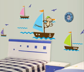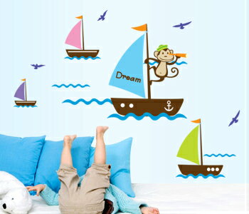 ウォールステッカー 海 サルとヨット 子供部屋 wallsticker 誕生日 壁飾り 動物 インテリア 絵 diy 壁紙 可愛い シール 木 北欧 窓 キッチン スイッチ 英文 英字 星 鳥 フレーム 花 猫 アルファベット 植物 緑 賃貸OK 模様替え