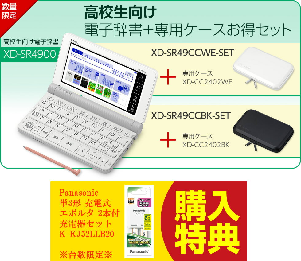 [特典付き エボルタ 2本付 充電器セット] カシオ 電子辞書 XD-SR49CCWE-SET(XD-SR4900同等品※ハイレベル英和辞典 リーダーズ英和辞典 第3版/リーダーズ・プラス収録 + 専用ケース ホワイト セット) / 高校生モデル エクスワード 難関大学の受験対策に最適 【在庫あり】